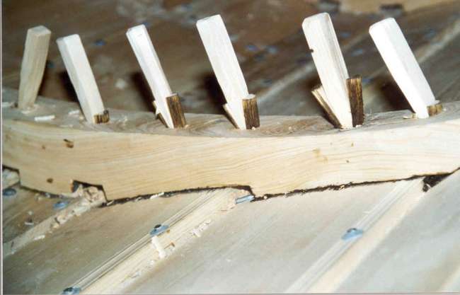 på en meter. De delene som skulle bli stevner eller spant ble funnet i