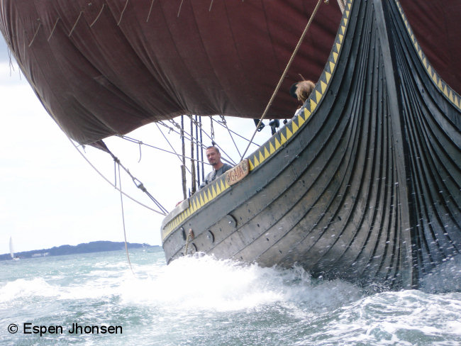 If you are not a member of the Gaia Crew you can become one by meeting us on a Wednesday sailing trip and pay the membership fee. We sail either Gaia or one of the smaller boats we have. One of the smaller boats, a 10 metre copy of a boat found in the Gokstad ship burial is also owned by the city of Sandefjord. We also go on weekend sailing trips, and usually we go on a 2 week trip